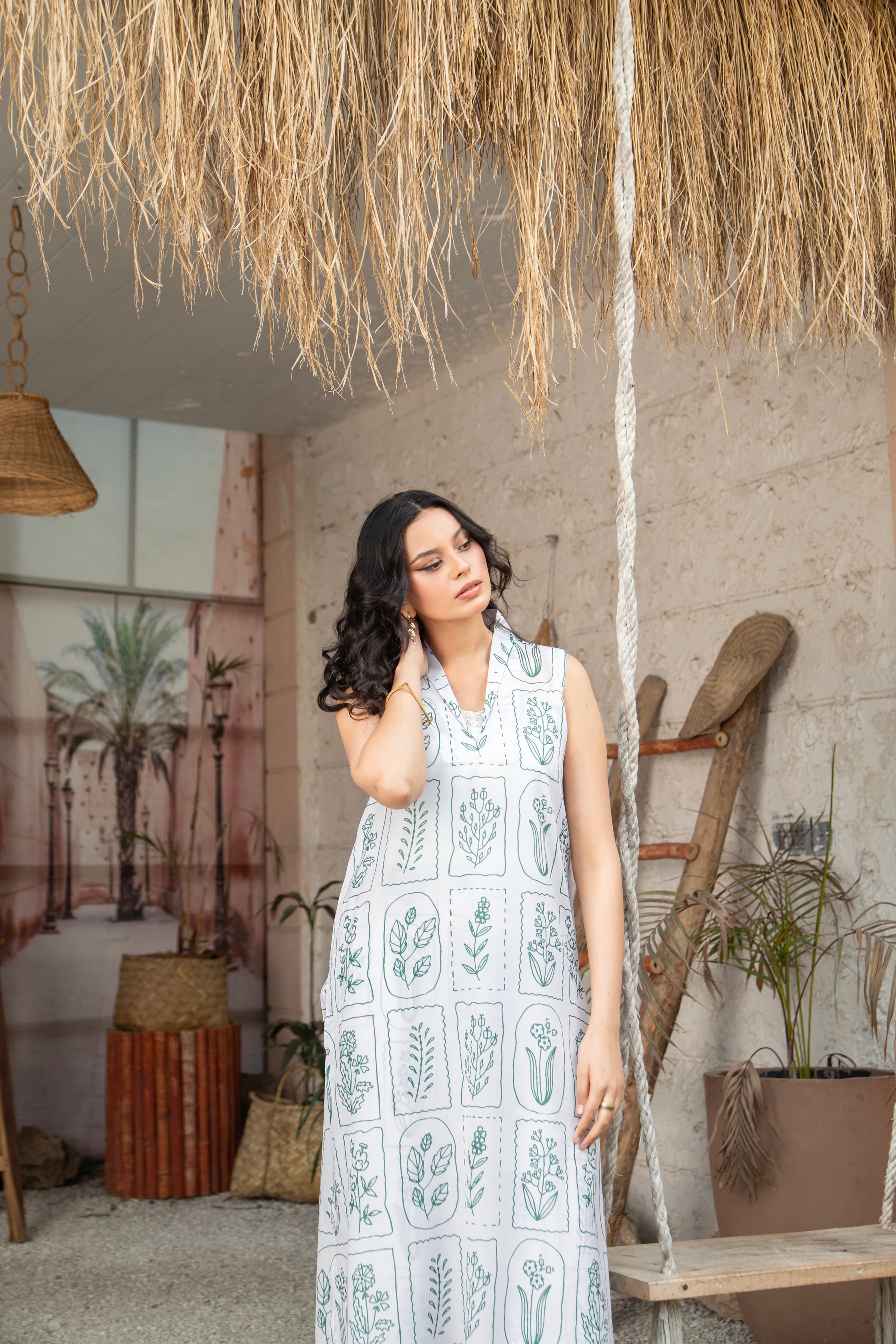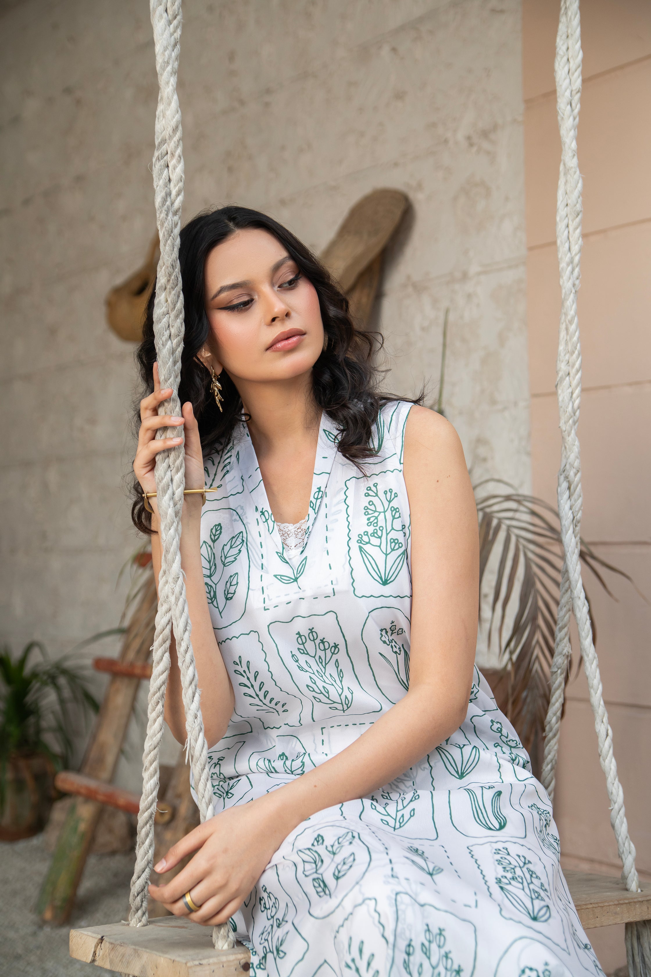 A playful yet sophisticated statement piece, Botanical Whimsy brings artistic charm to life. Crafted from soft grip fabric, this cream-colored dress is adorned with digitally rendered botanical scribbles and hand-drawn floral doodles, each box revealing a unique flower bunch. Celebrating the beauty of imperfection, this dress transforms organic irregularity into a striking and whimsical design — perfect for the free-spirited, style-forward woman.