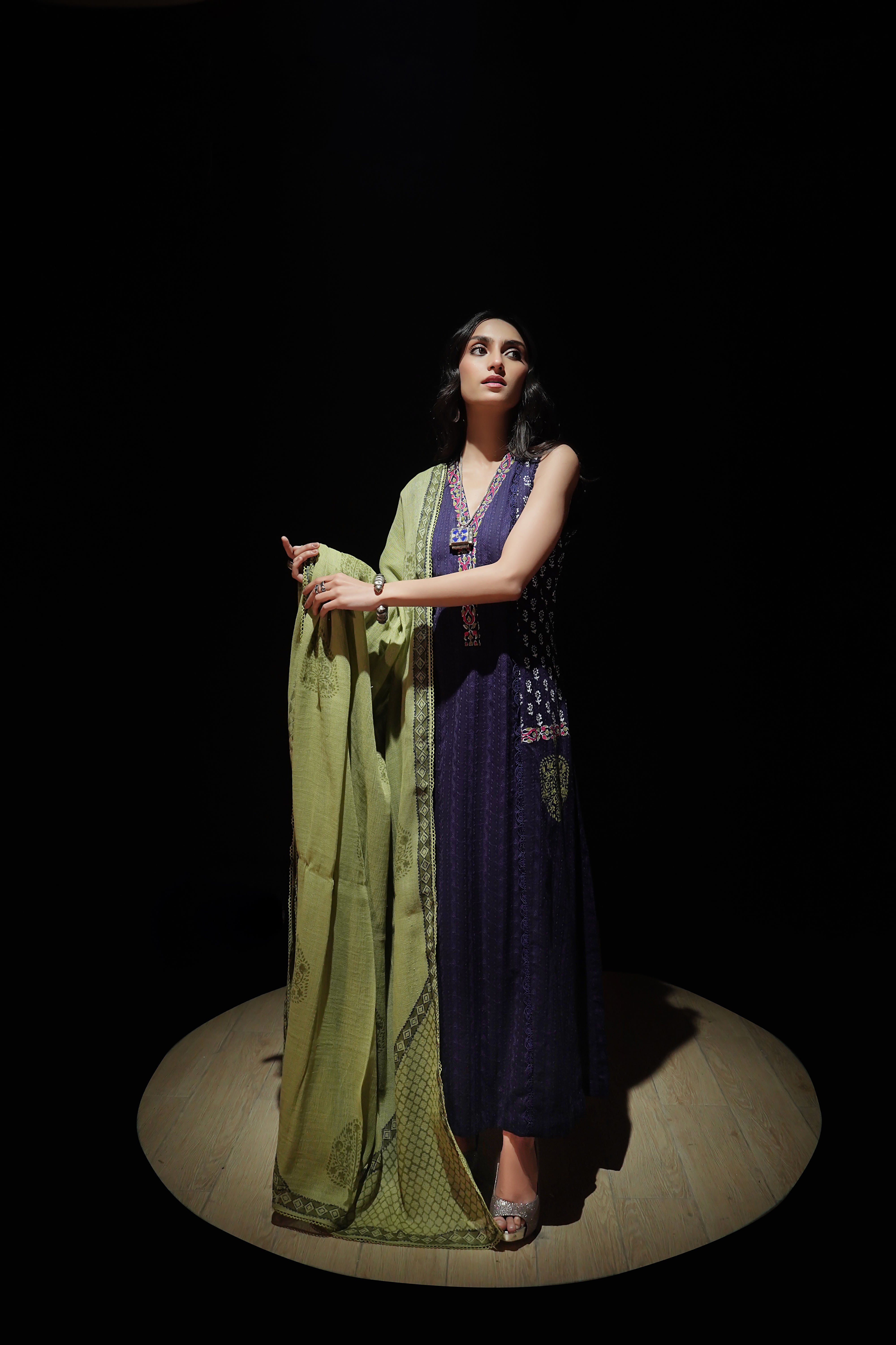 Complete the look with silver drop earrings and nude heels for a refined event look, or add bold bangles and metallic sandals for festive flair.