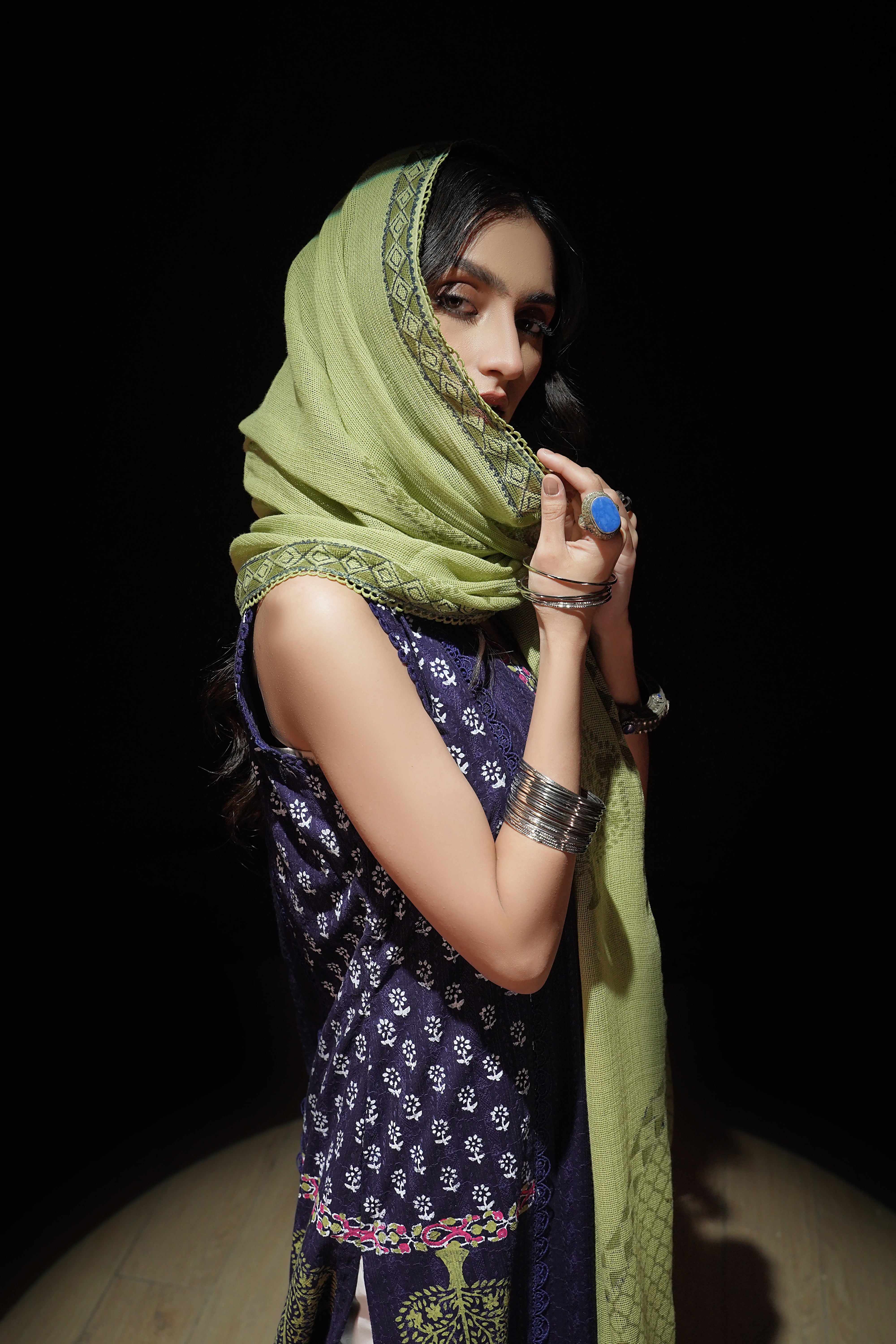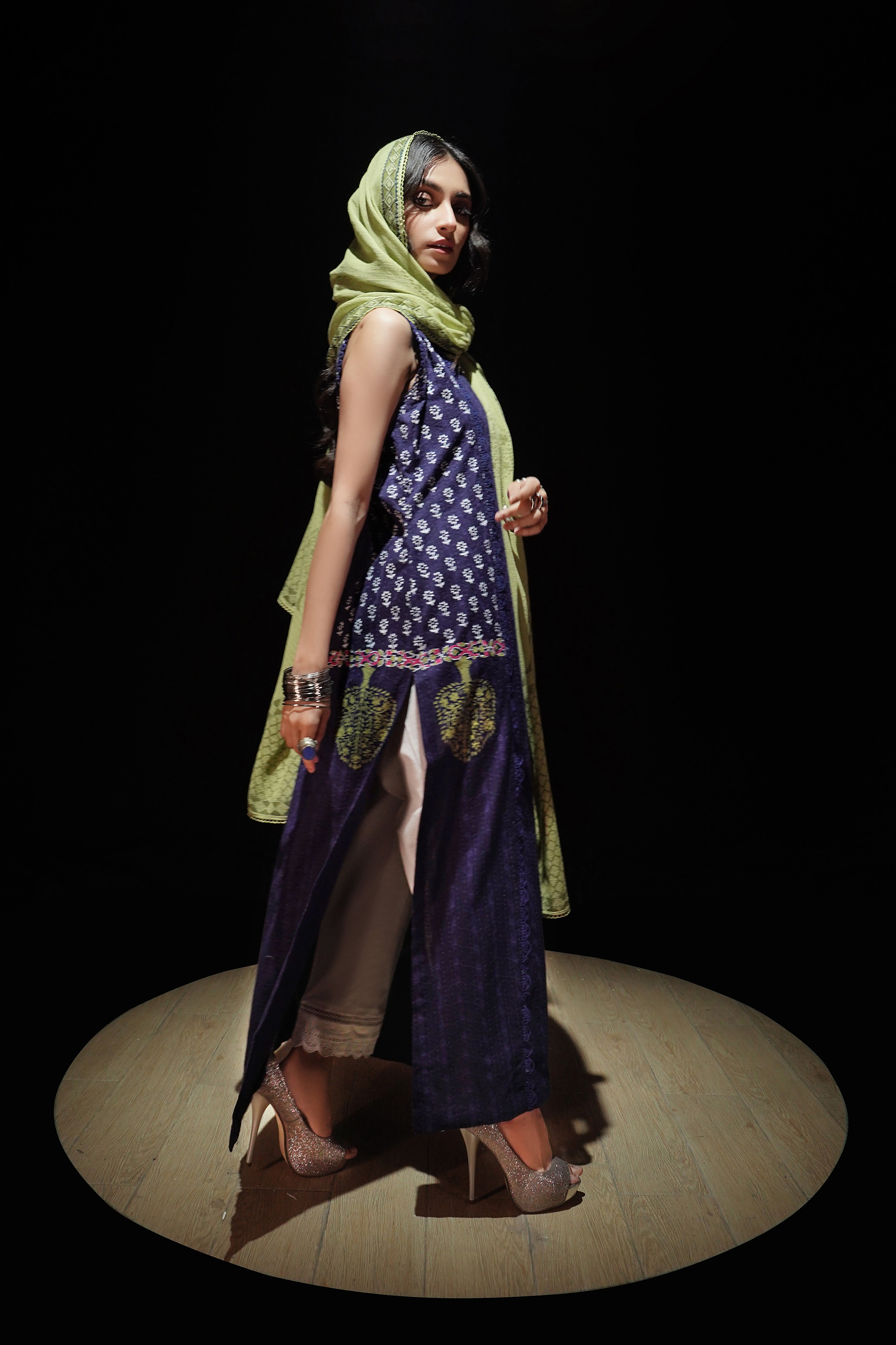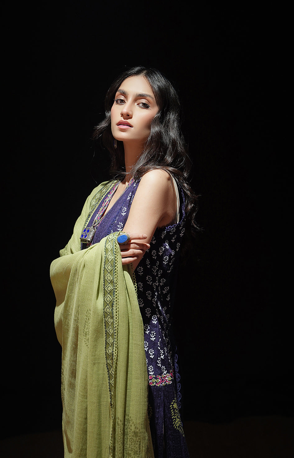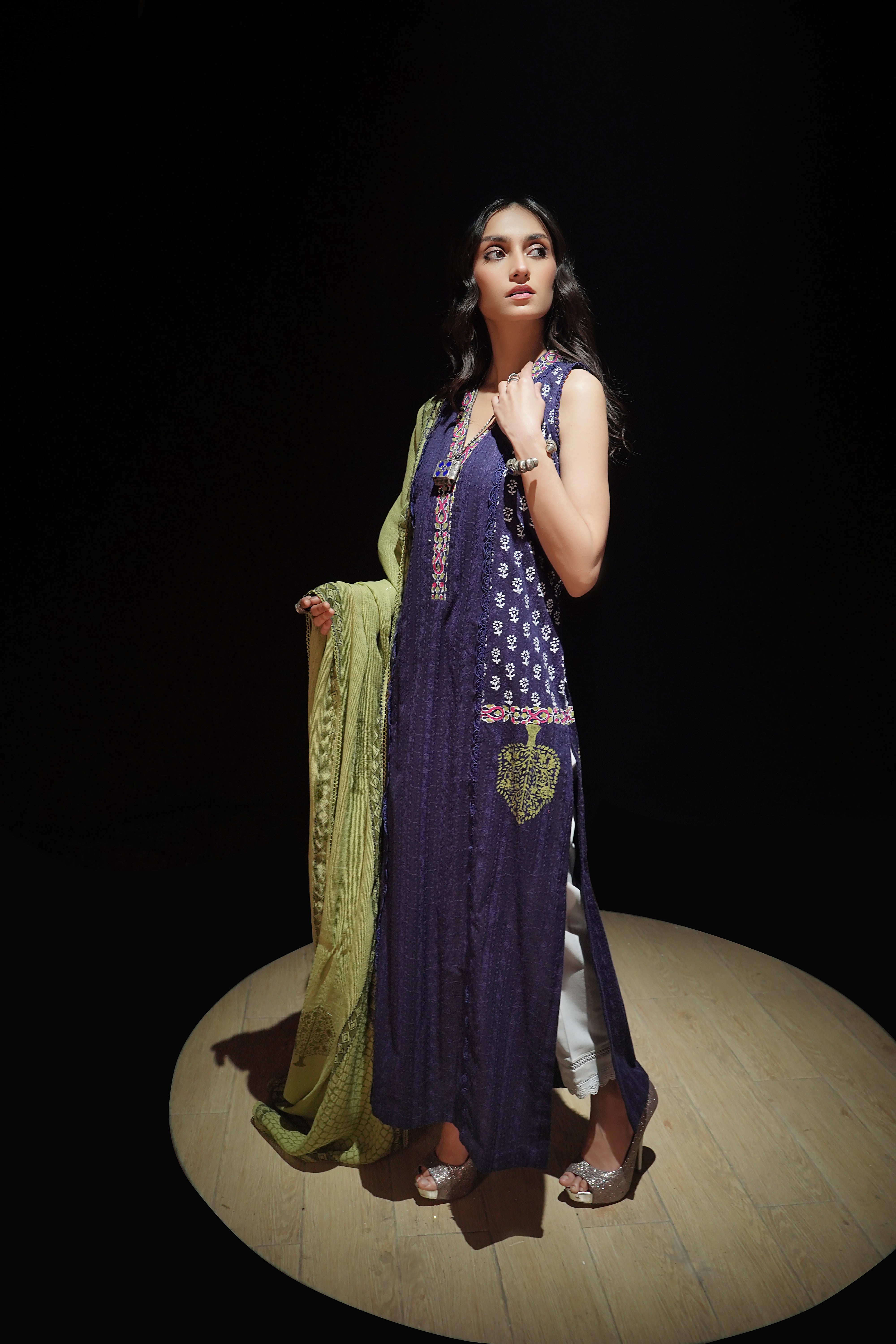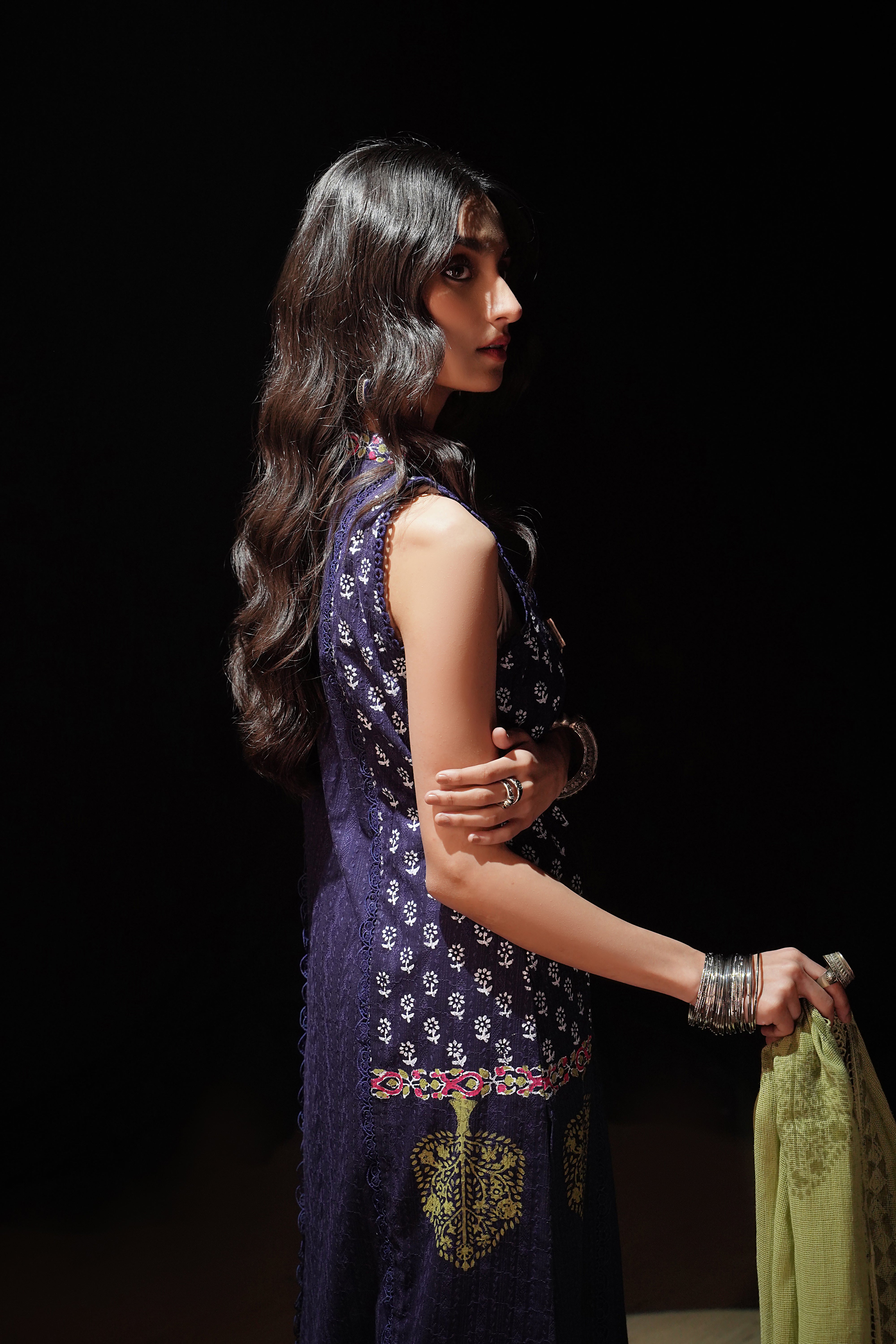 • Dupatta/Drape: Contrasting Cotton Net