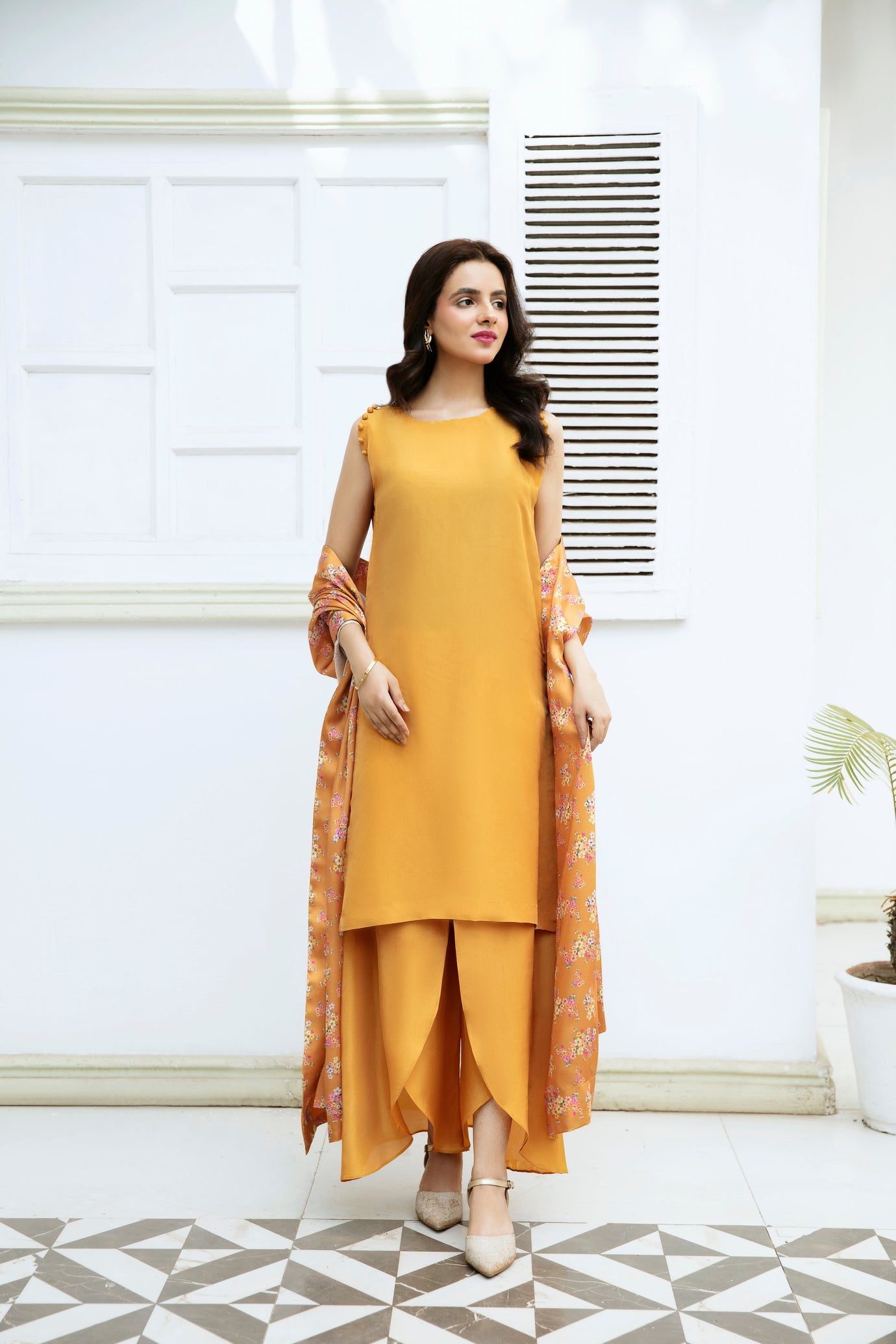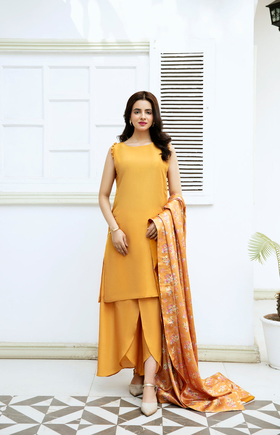 🌼 Goldenrod - Mustard 3-Piece Pure Silk Suit with Printed Dupatta | Modern Festive Wear