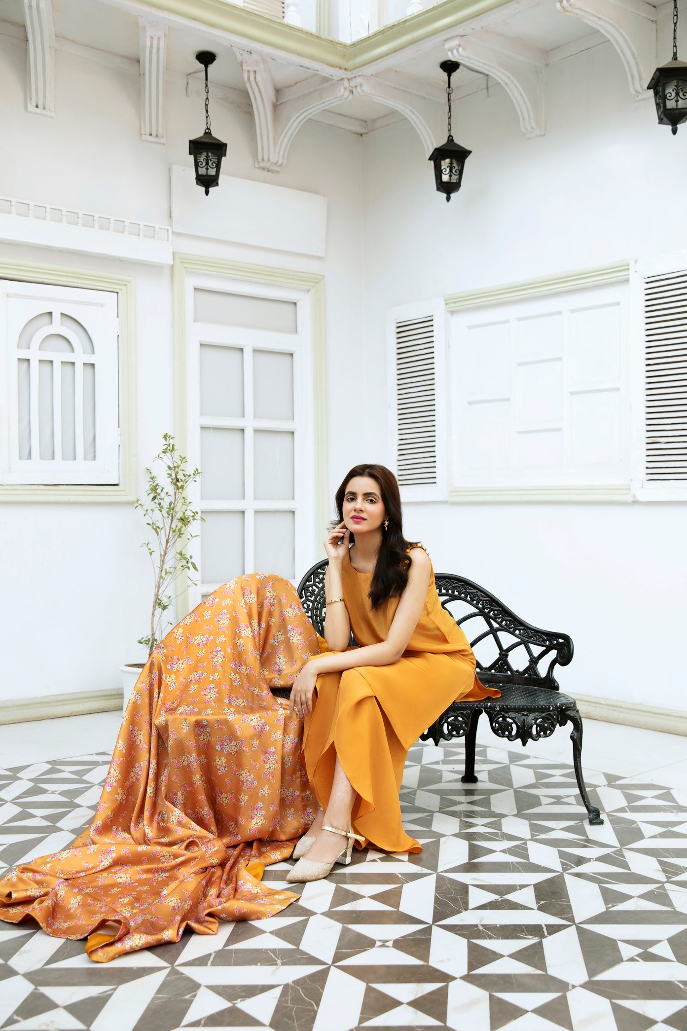 Floral Printed Dupatta: The vibrant silk dupatta, adorned with a floral print, ties the look together with a burst of color and sophistication.