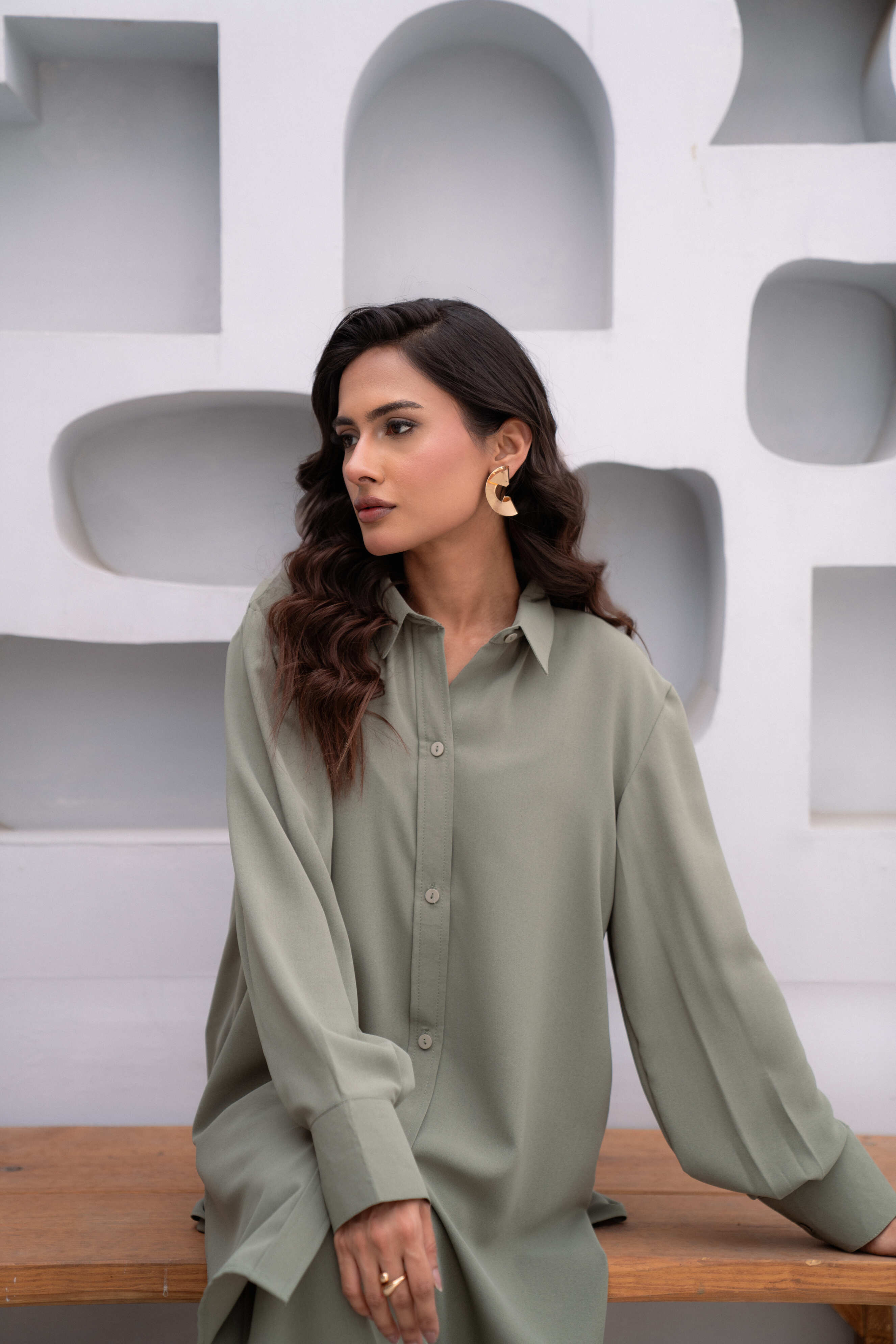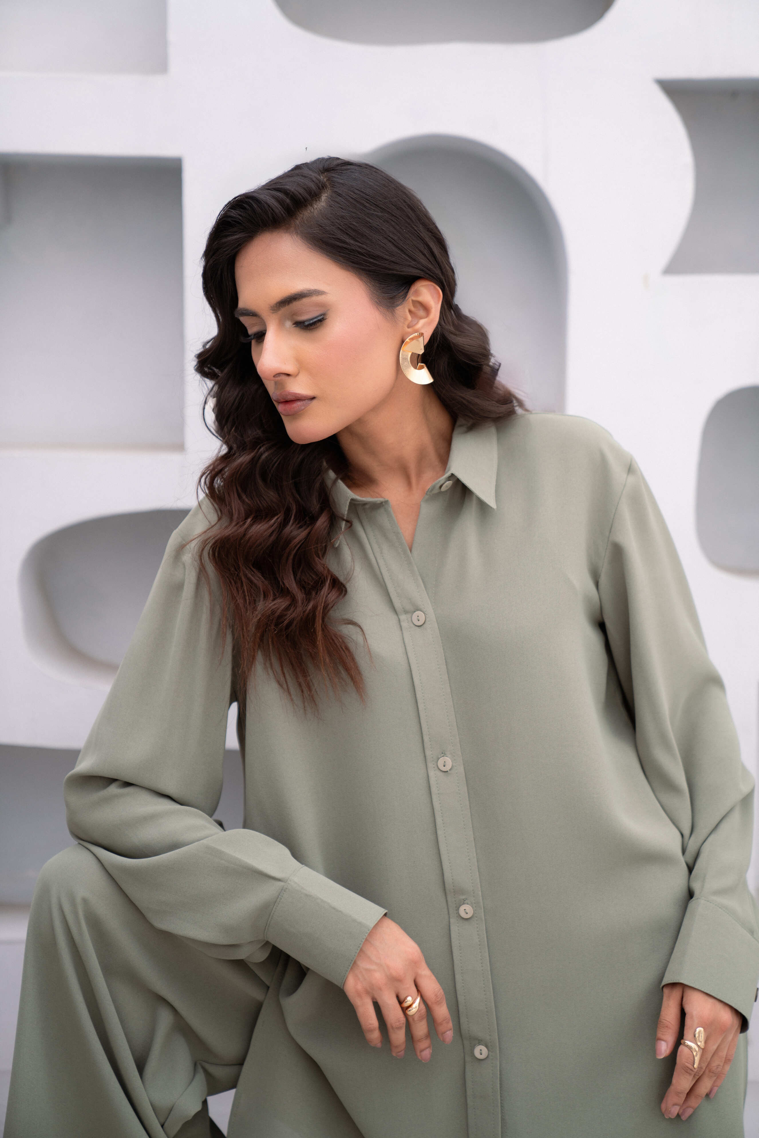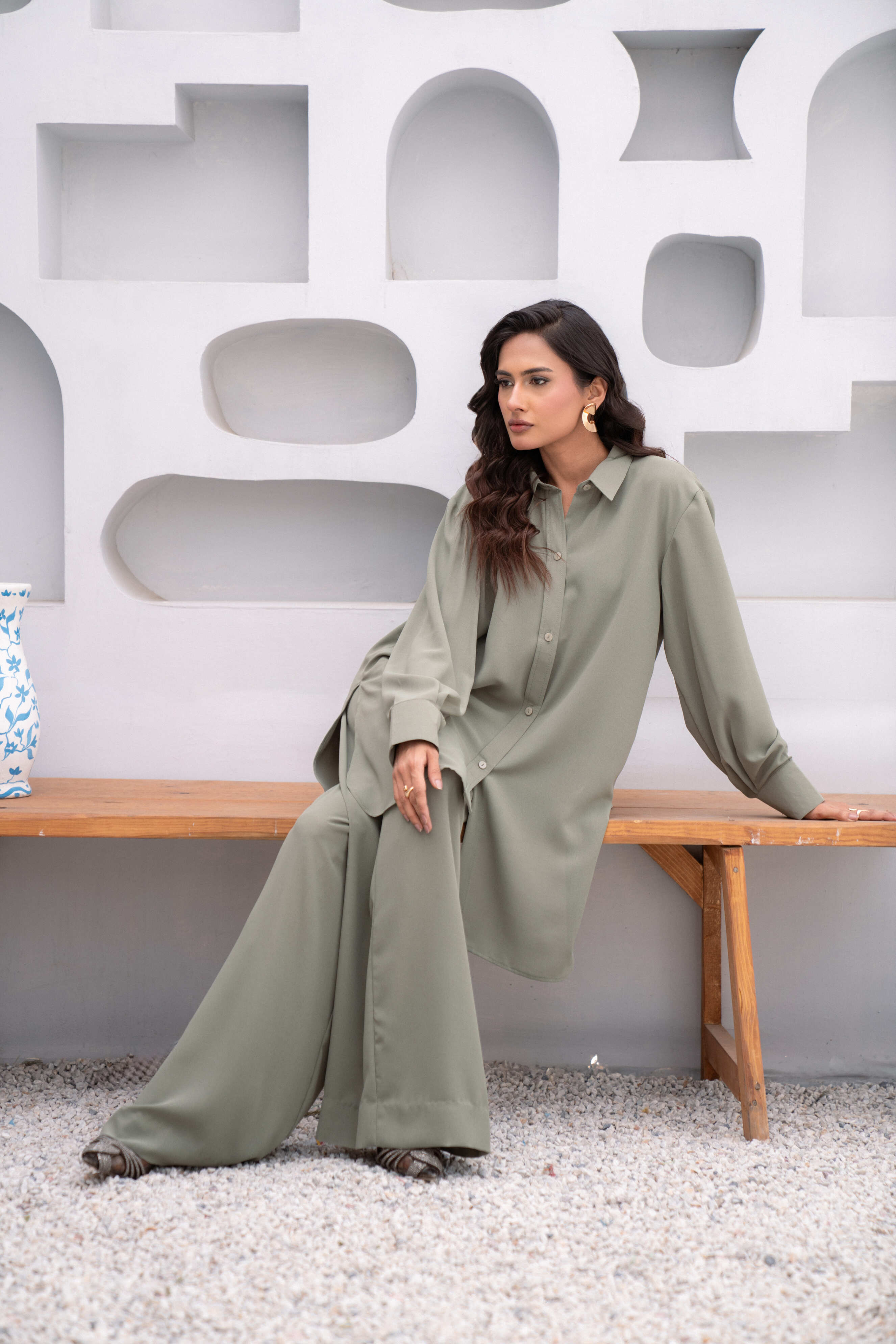 Soft as a summer breeze, Moss Bloom blends contemporary tailoring with classic lines for a look that’s effortlessly refined. Featuring a collared V-neckline and a flowing silhouette, this rich green set is your perfect companion for both casual sophistication and everyday comfort. Whether dressed up or down, it’s a versatile must-have.
