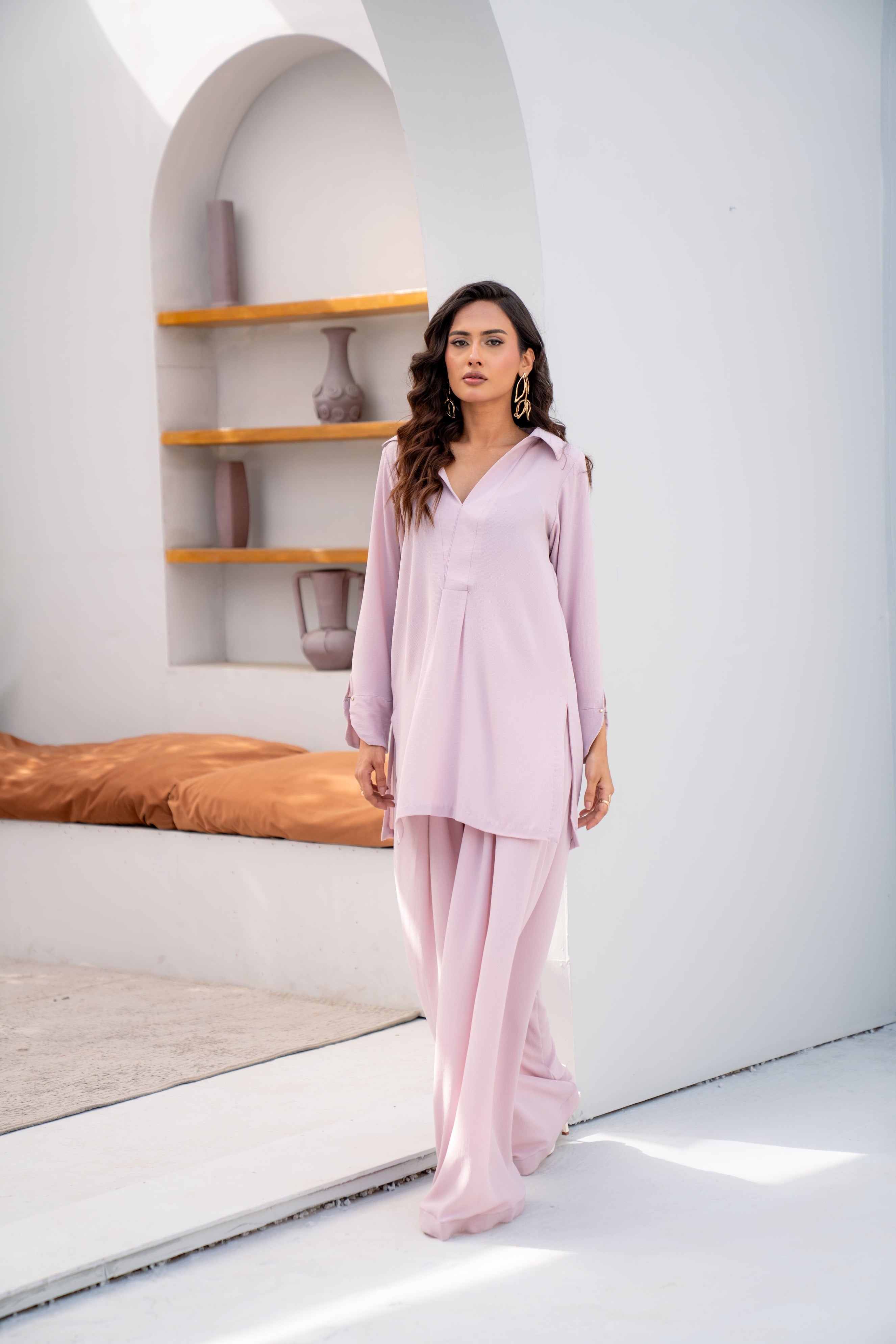 🔥 Mystic Lilac – Long Collared CY Crepe Co-ord Set