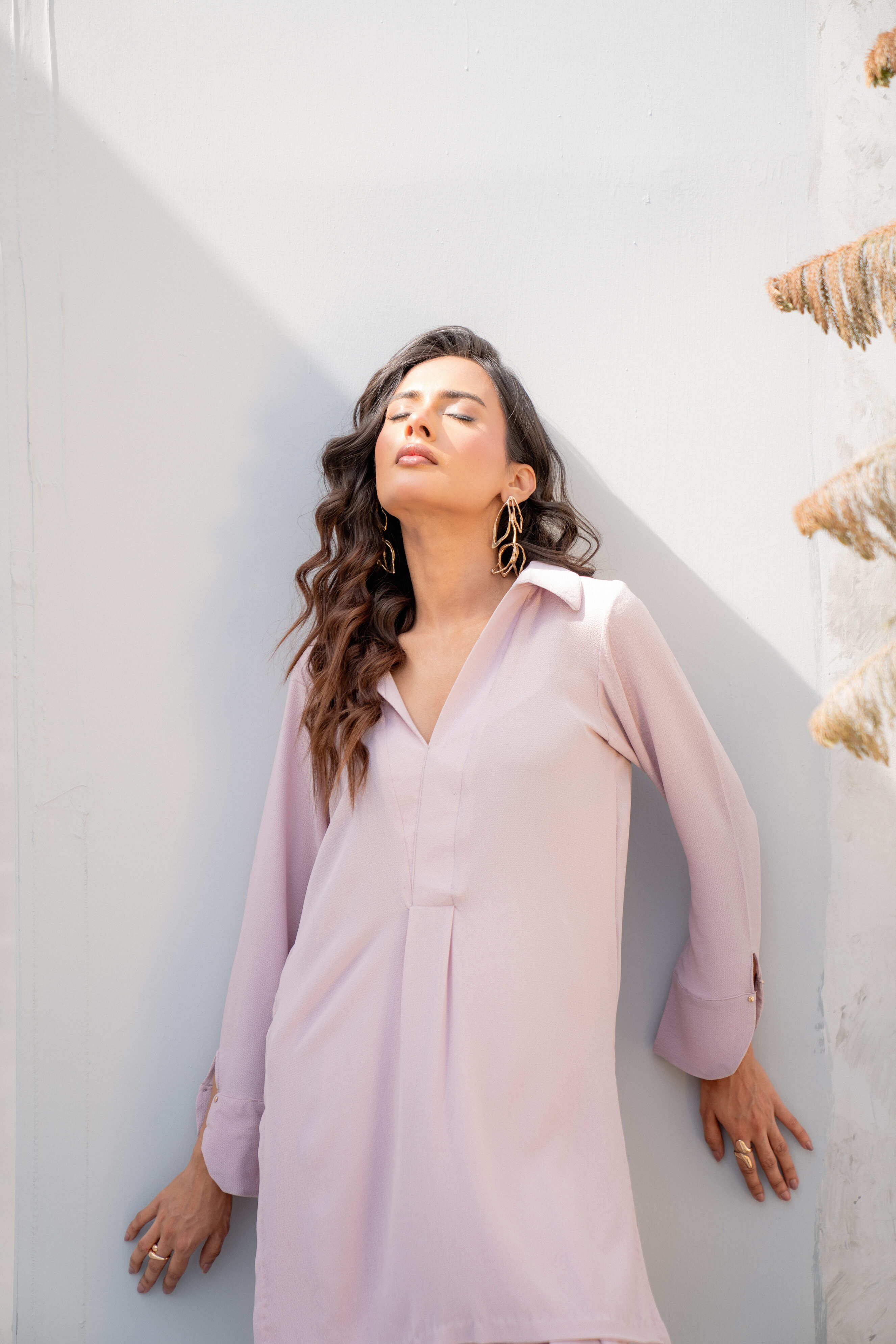 A graceful co-ord set that flows with effortless charm, Mystic Lilac is designed for the woman who commands elegance in simplicity. Featuring a long collared tunic with delicate stitch detailing and wide-legged palazzos, this lilac ensemble brings soft sophistication to your day-to-night wardrobe. Light, airy, and timeless.