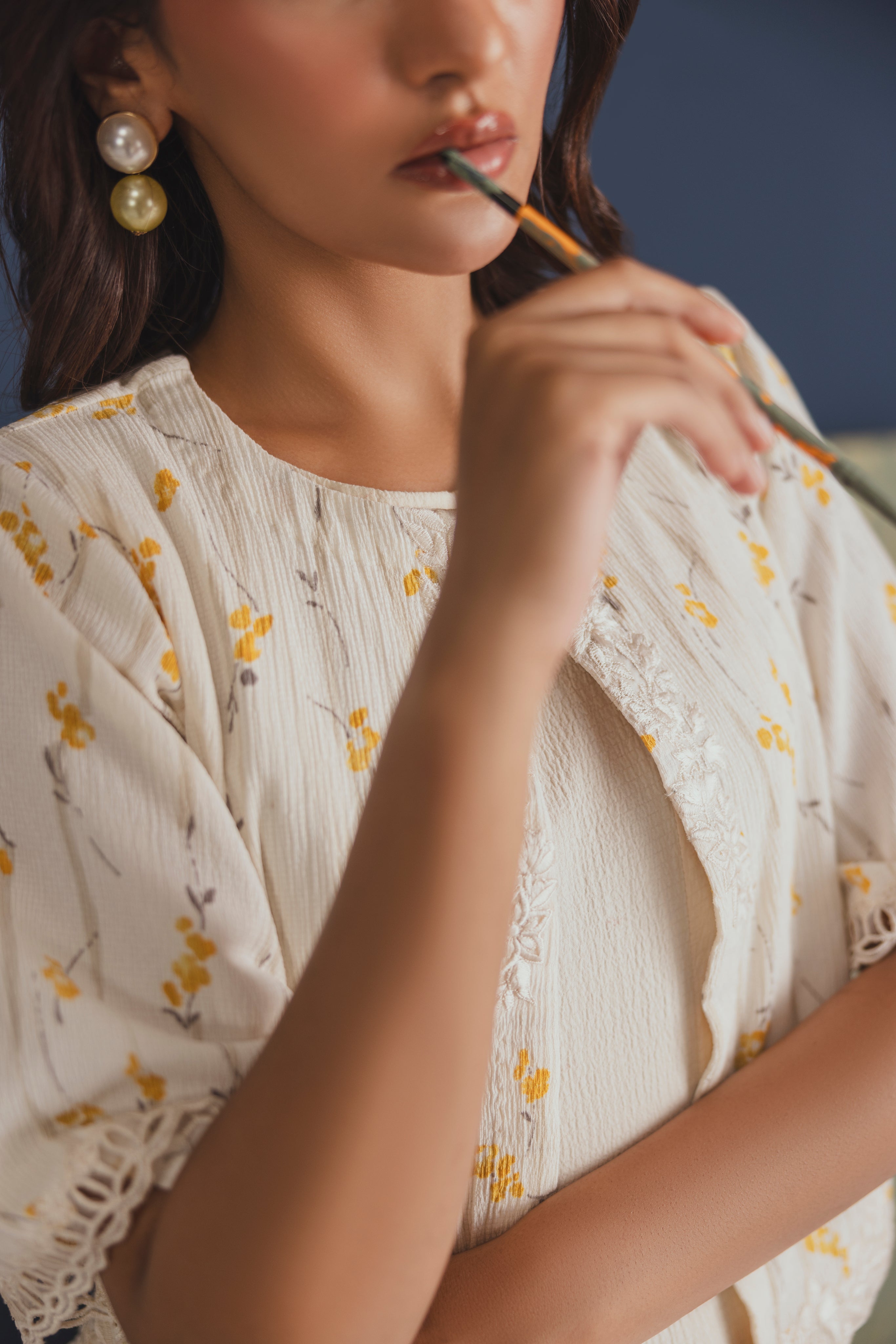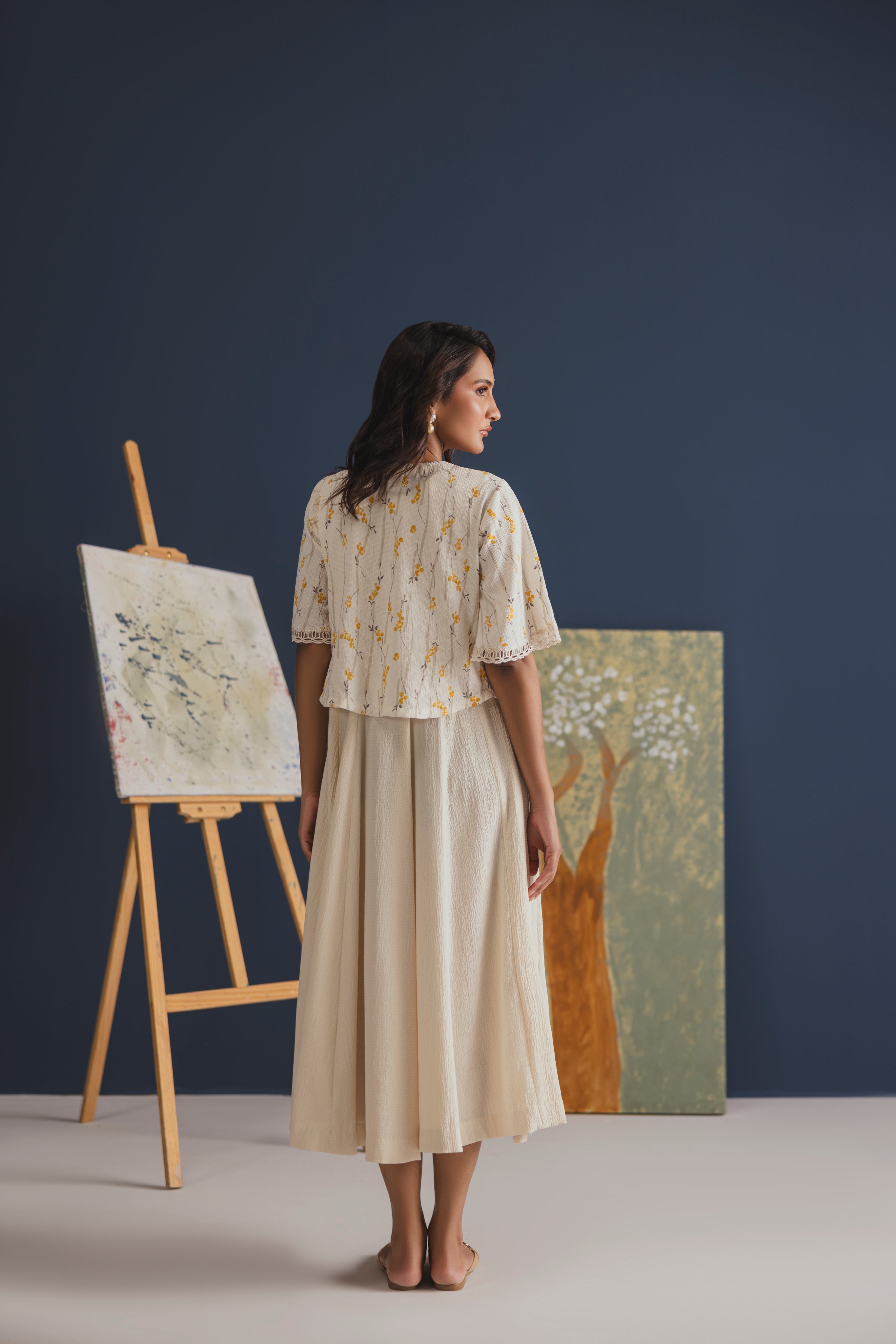 Long flowing shirt with natural creases and soft printed undertones for an organic, textured look