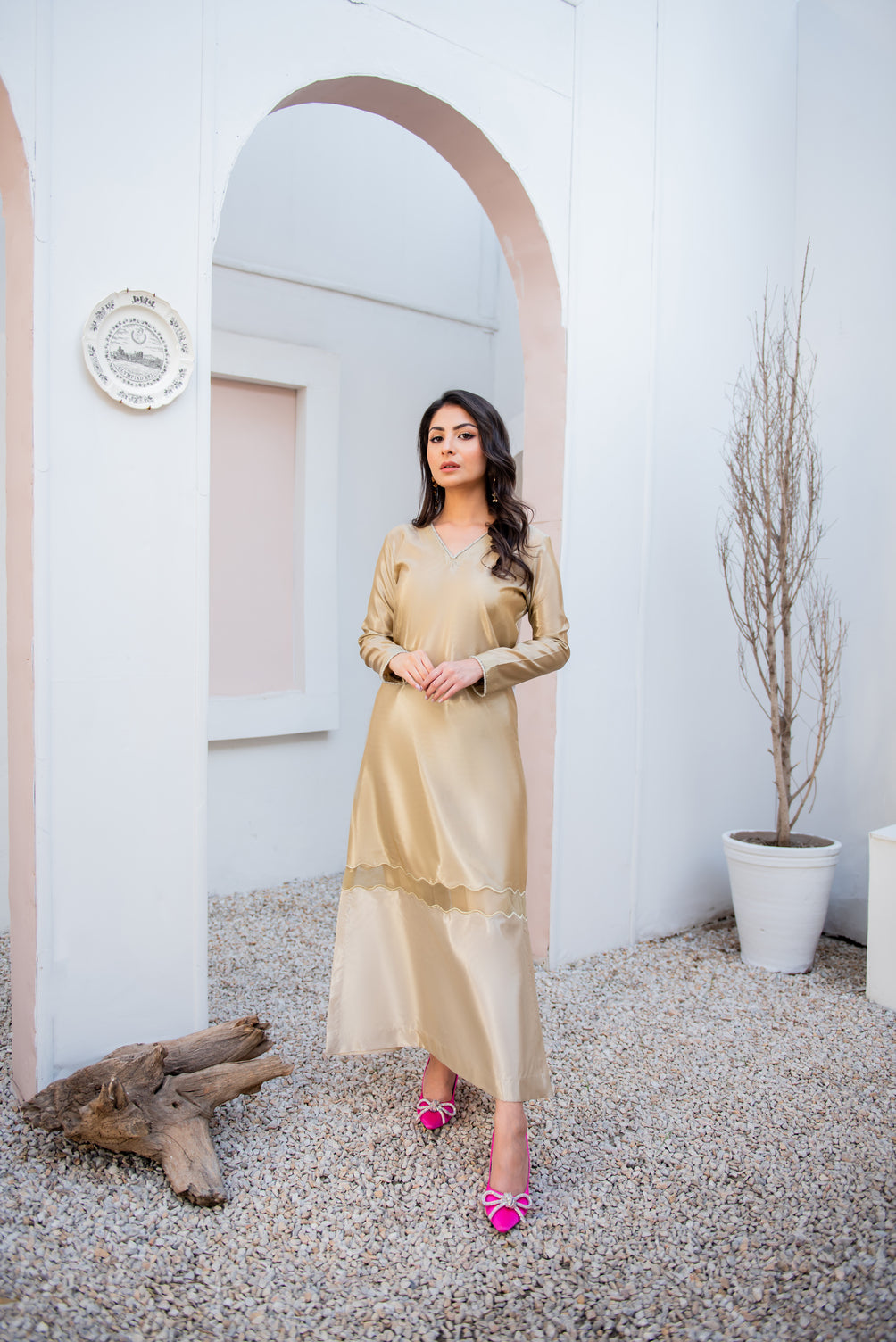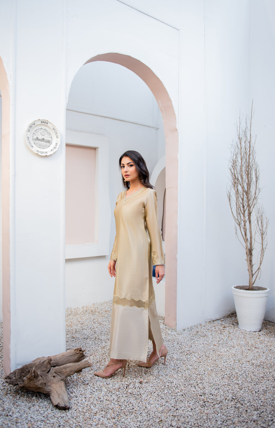 • Shirt: Off-White Shimmery Premium Fabric with Sheer Detailing