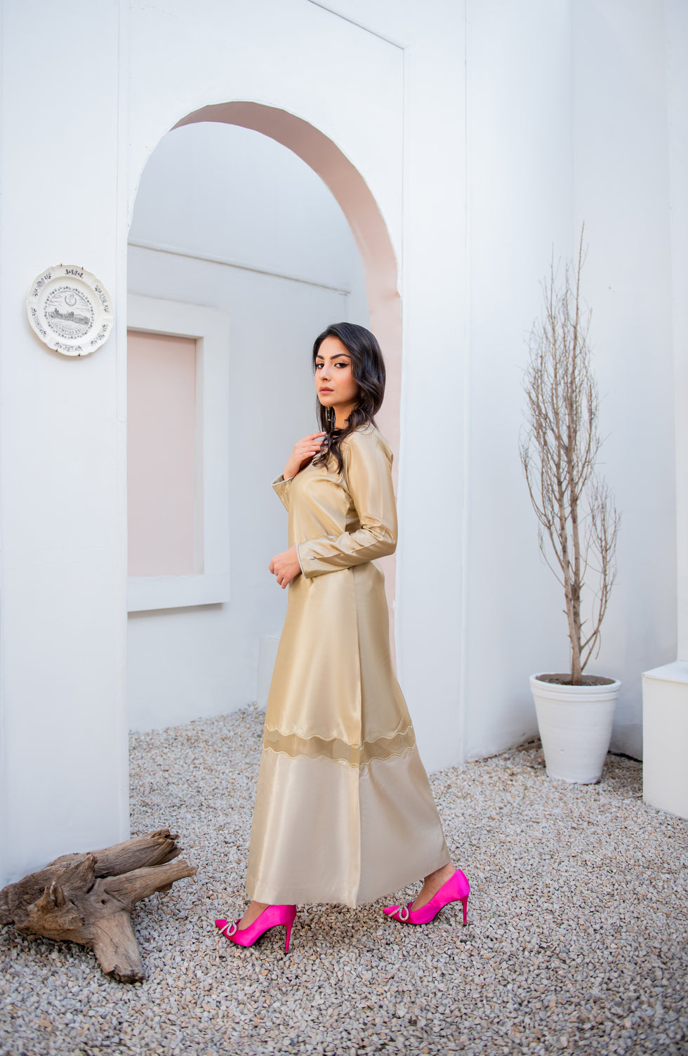 Elevate your elegance with Pearl Desire, a sophisticated 2-piece ensemble that radiates timeless beauty. The off-white shimmery shirt, crafted from premium high-quality fabric, glistens gracefully with every movement, infusing your look with a subtle touch of glamour. Delicate sheer detailing and intricate textures add depth and refinement, while the matching tailored trousers complete the ensemble with seamless coordination — perfect for occasions where understated luxury takes the lead.