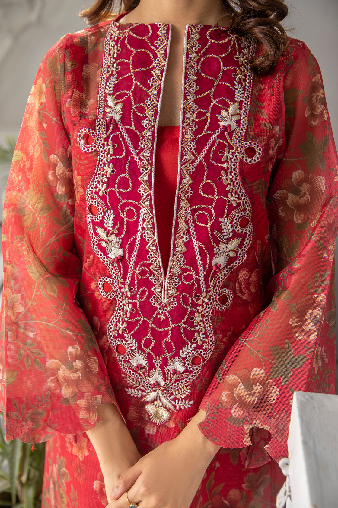 • Shirt: Cotton Net with Digital Print & Embroidered Neckline